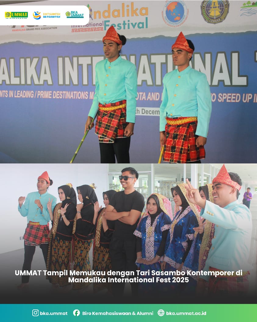 Mandalika – Universitas Muhammadiyah Mataram (UMMAT) turut berpartisipasi dalam ajang Mandalika International Fest 2025 dengan menampilkan Tari Sasambo Kontemporer, sebuah pertunjukan seni yang memadukan kekayaan budaya lokal Nusa Tenggara Barat dengan sentuhan kreativitas modern. Penampilan ini menjadi salah satu daya tarik dalam rangkaian acara berskala internasional tersebut.
