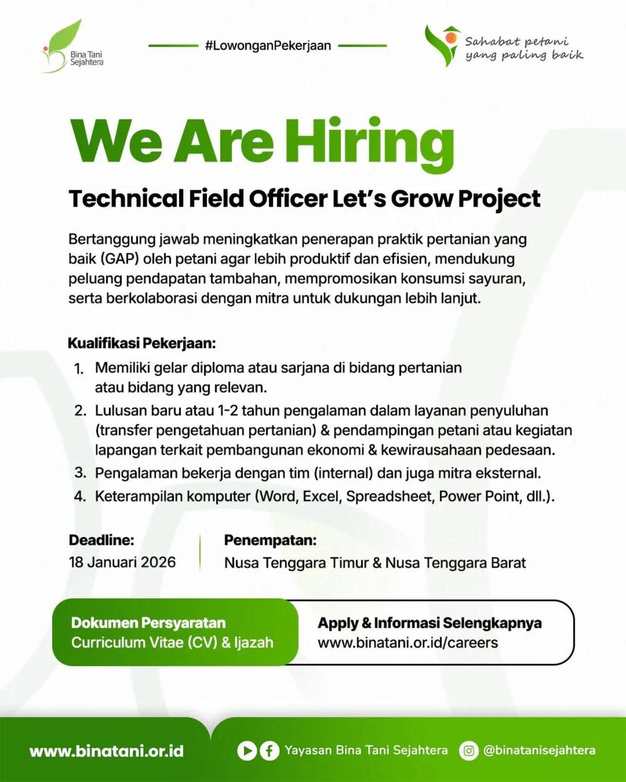 * Minimal memiliki 1 tahun pengalaman sebagai TTK