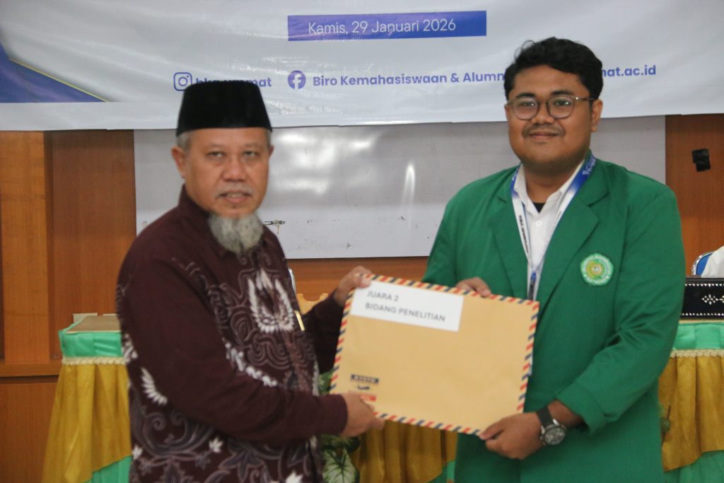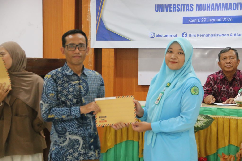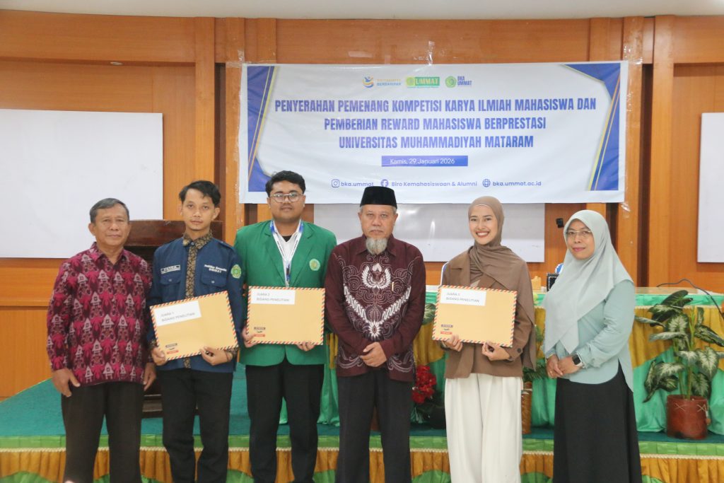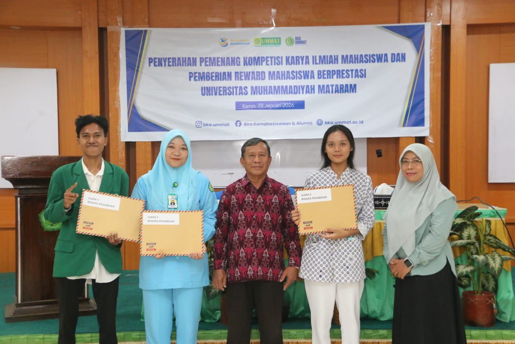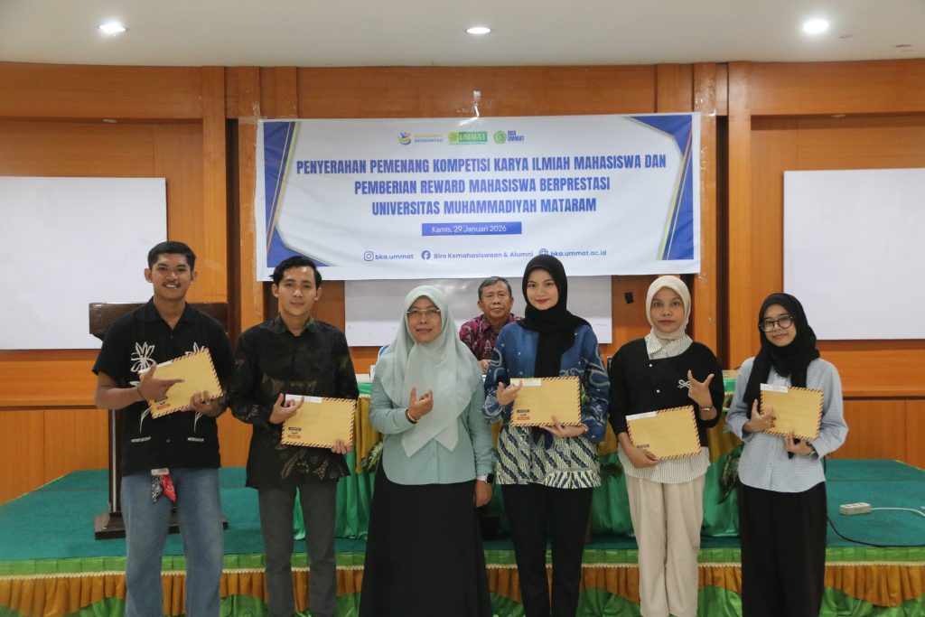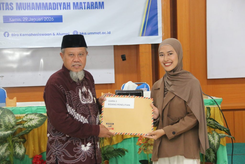 Mataram – Biro Kemahasiswaan dan Alumni (BKA) Universitas Muhammadiyah Mataram (UMMAT) menggelar acara Penyerahan Hadiah Pemenang Kompetisi Ilmiah Mahasiswa dan Penyerahan Reward Prestasi Tahun 2025-2026 Termin 1 di Ruang Pertemuan Lt.3 Rektorat UMMAT pada 29 Januari 2026. Acara ini dihadiri oleh Rektor UMMAT, Wakil Dekan 2 dari berbagai Fakultas, Dosen Pembimbing, serta mahasiswa penerima penghargaan.